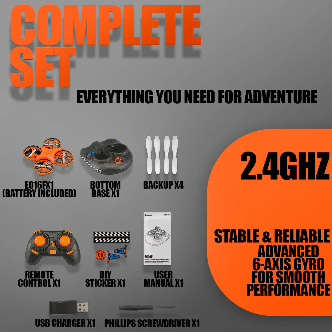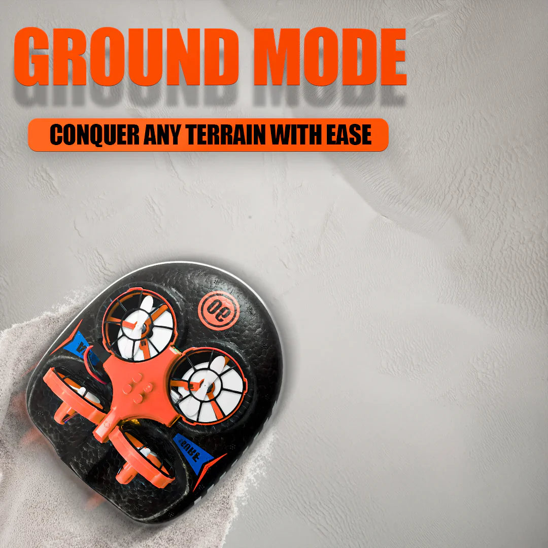 Embrace the thrill of discovery with the 3-in-1 Hovercraft Drone. More than a mere device, it is your gateway to boundless exploration. Effortlessly transition between its three distinct modes – Water, Ground, and Flight – unlocking endless possibilities for enjoyment. Designed with your convenience and safety in mind, it features intuitive controls, a reliable one-key return function, and proactive low battery alerts. Its robust construction and comprehensive waterproofing ensure it is the perfect companion for navigating any terrain, from tranquil waters to open skies.