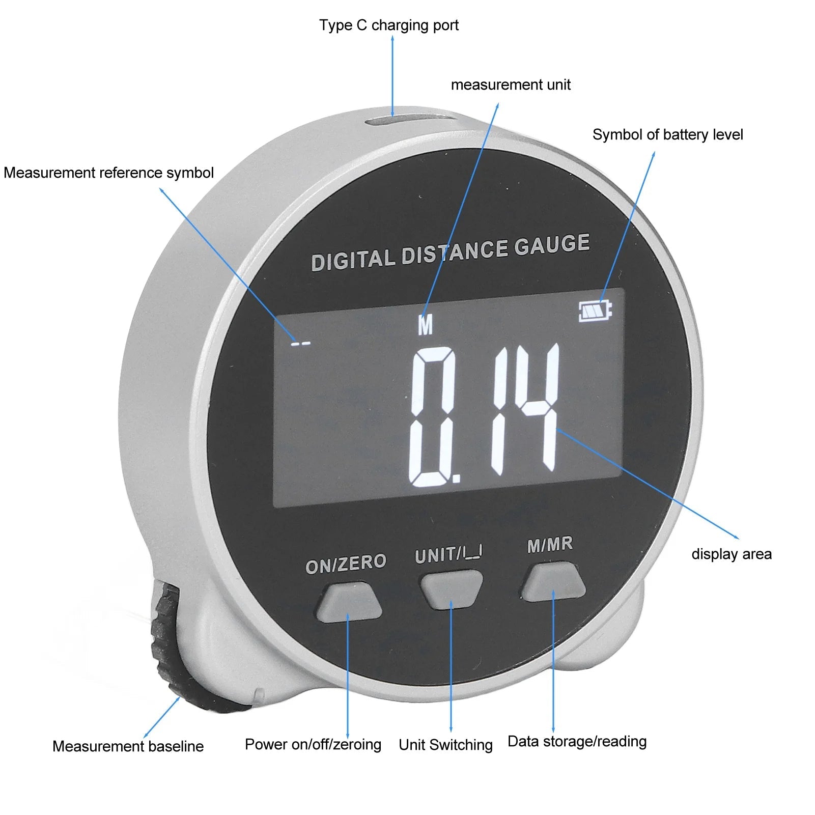 Elevate your approach to measurement with this advanced digital instrument. Crafted for discerning professionals and meticulous homeowners, this electronic measuring tool provides swift, precise results presented clearly on its sophisticated digital display. From intricate construction endeavors to precise home furnishing layouts, it guarantees unparalleled accuracy and effortless convenience for every undertaking.