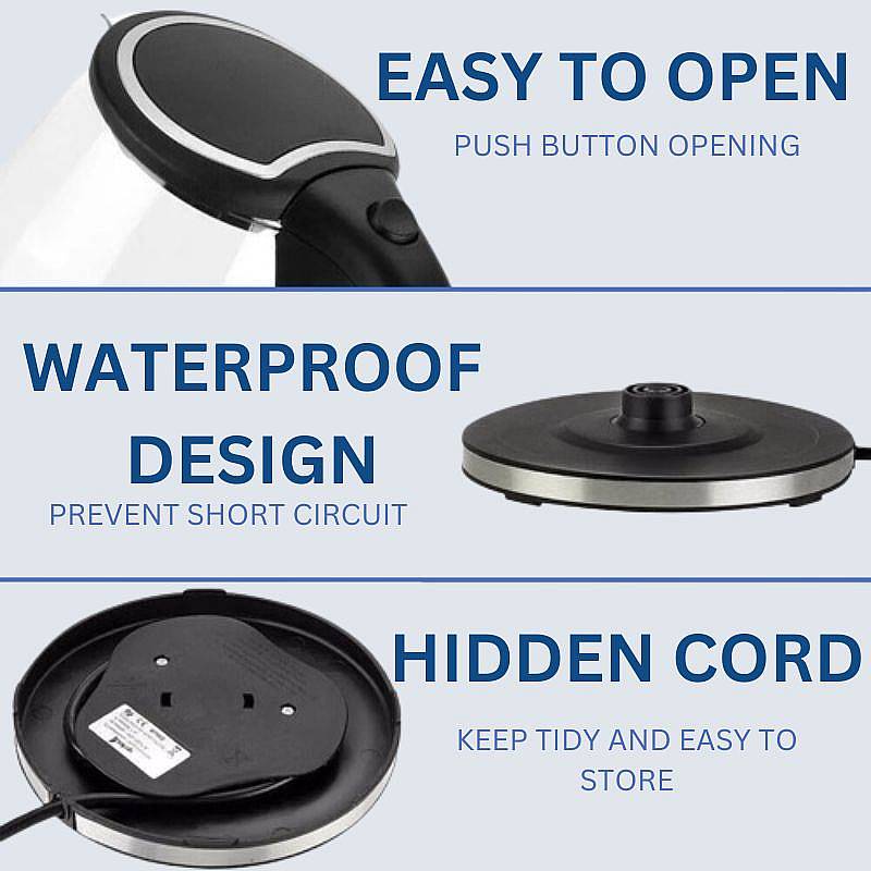 Embrace unparalleled flexibility in your kitchen with our Electric Glass Kettle's cordless design and 360° rotating base. Its thoughtful engineering includes a wide opening for effortless filling and a precisely crafted spout to ensure graceful, spill-free pouring, making every use a pleasure.
