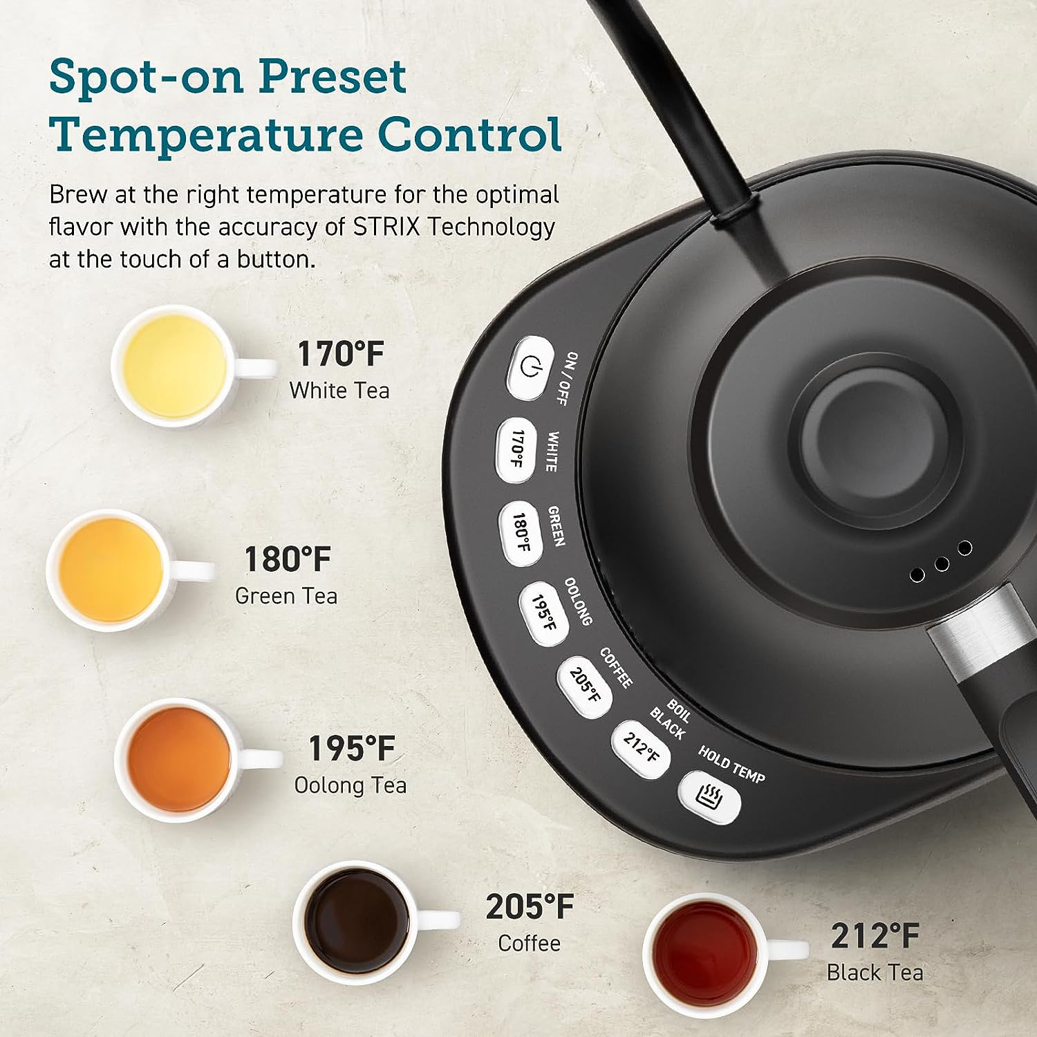 Thoughtfully equipped with five distinct temperature presets, this kettle simplifies the preparation of a diverse array of hot beverages. The convenient 'hold temp' function maintains your water at the perfect warmth for up to an hour, ensuring it's always ready for your next cup. Crafted from premium stainless steel, it promises an unadulterated, pure taste with every use.