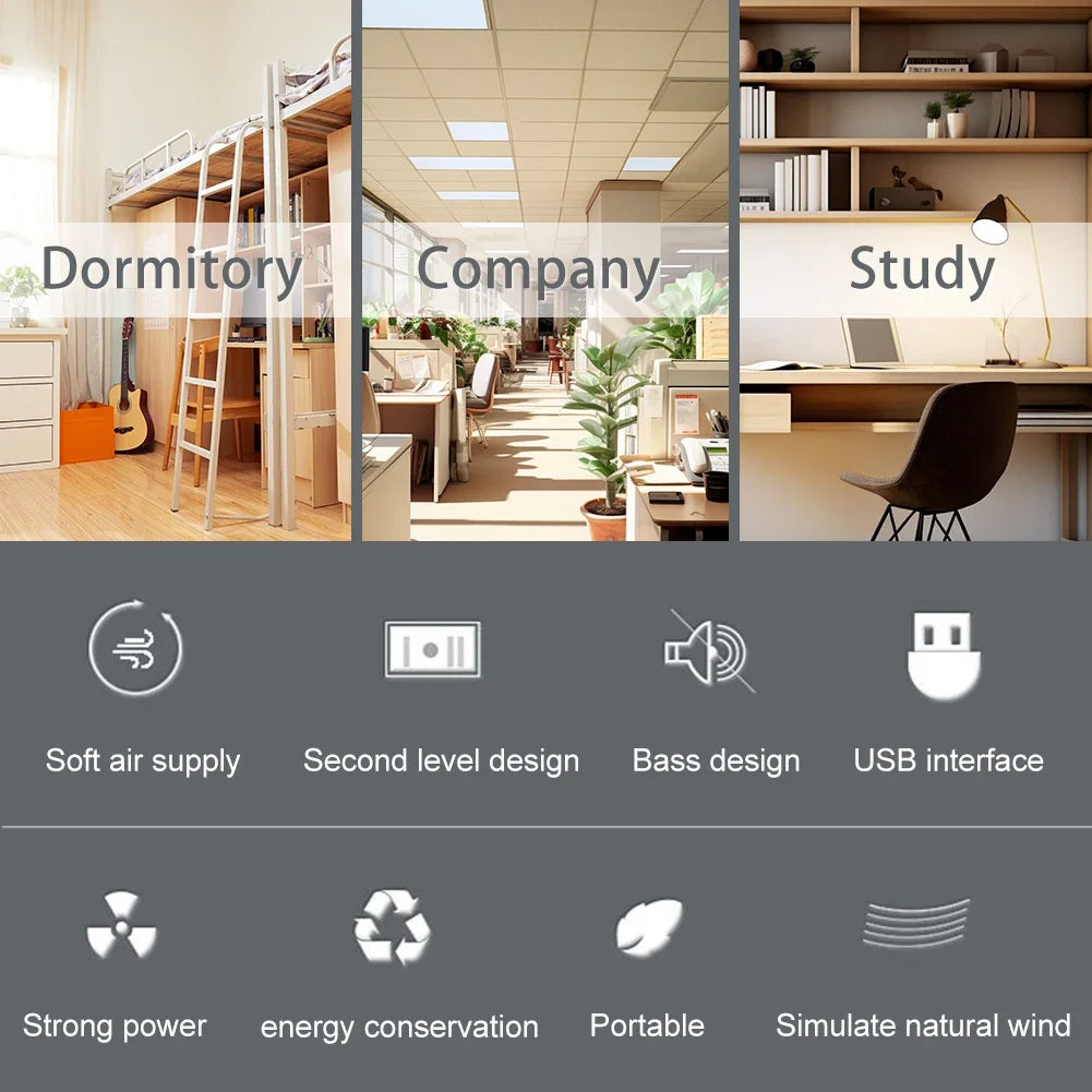 Its versatile USB power capability ensures effortless operation, drawing power from a laptop, power bank, or standard wall adapter. Designed for ultimate portability, this compact unit accompanies you effortlessly, ensuring a consistently cool and serene atmosphere whether you are at home or traveling.